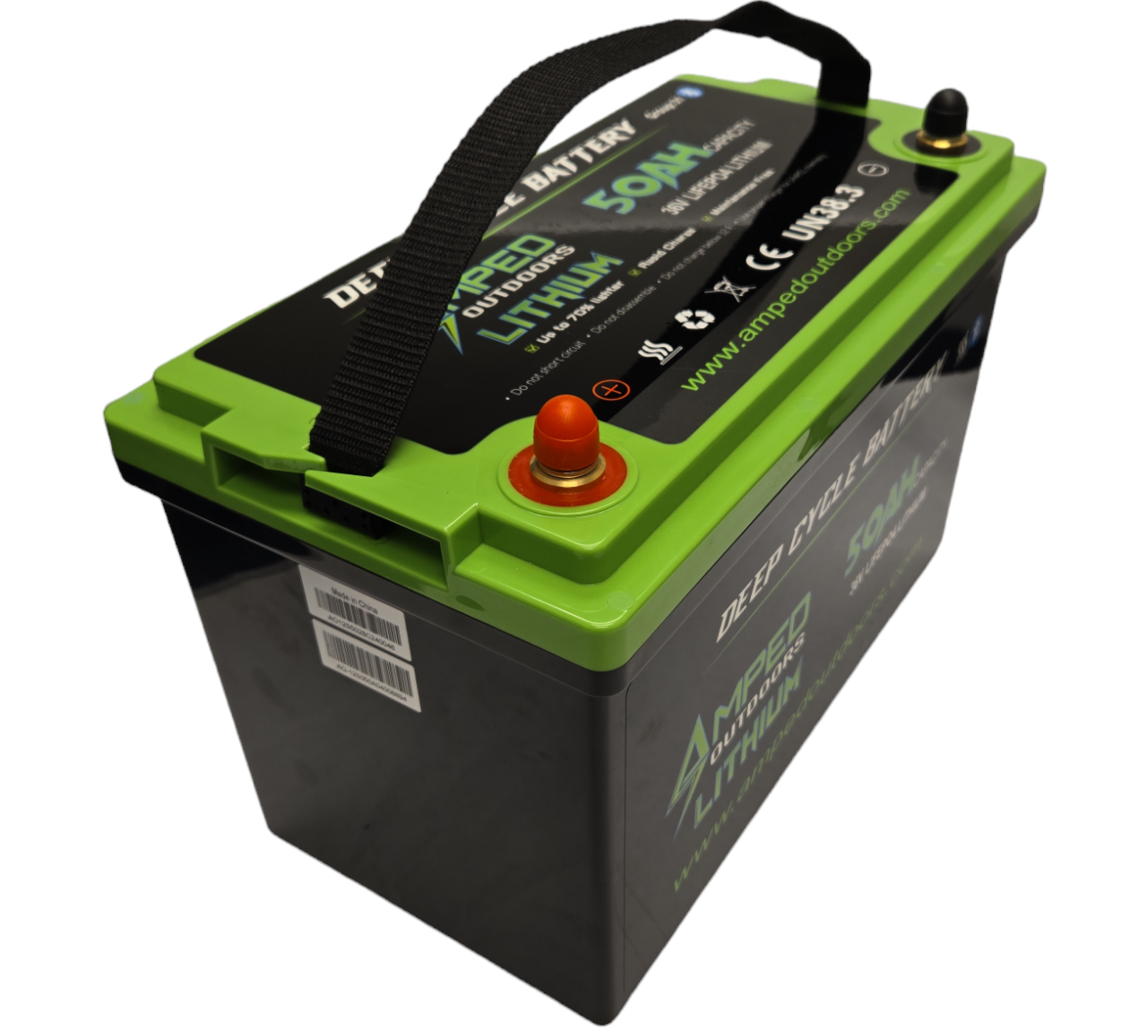 ow with Advanced Bluetooth Technology that will let you monitor one or multiple batteries at once. Heated charging for charging below freezing. Exclusive to Amped Outdoors! *Use Amped Outdoors App only. Other apps may connect to our battery but can cause wrongful updates and will not be covered under warranty if it stops working.